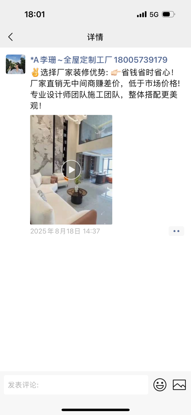 全鋁整裝源頭工廠,軟裝贈(zèng)送等廣告吸引,留下聯(lián)系方式后,對(duì)方(微信名:*李珊~全屋定制工廠18005739179)頻繁溝通,表示如果做樣品房合作,可以贈(zèng)送30%-40%軟裝贈(zèng)送,施工補(bǔ)貼、部分輔料補(bǔ)貼、物流補(bǔ)貼等。后頻繁溝通讓去工廠(浙江省嘉興市海寧市袁花鎮(zhèn)聯(lián)紅路158號(hào)力都產(chǎn)業(yè)園老廠房8幢118號(hào))考察,還承諾車接車送,還表示目前他們未在我們當(dāng)?shù)亻_拓市場(chǎng)所以需要樣板房,如果到時(shí)候有其他人了,就沒(méi)有這樣的合作活動(dòng)了。