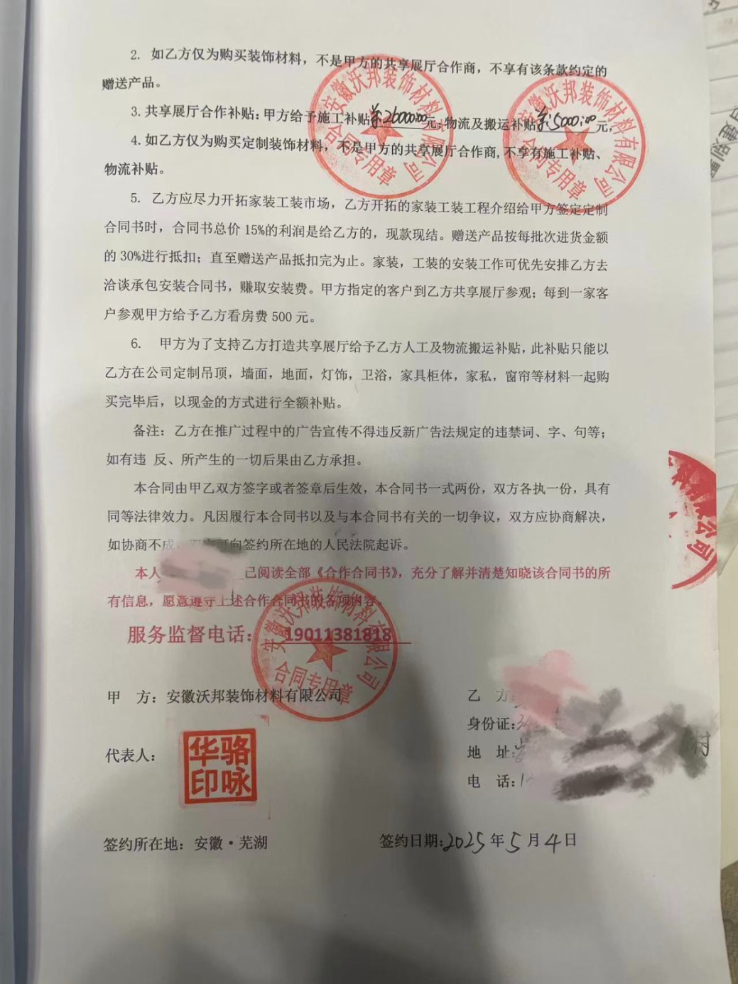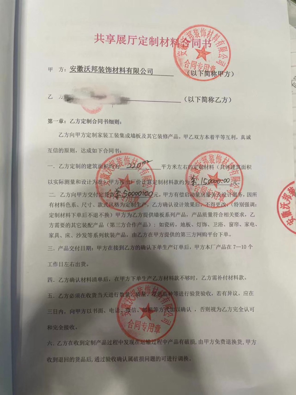 2025 年 4月,我在抖音上看到蕪湖沃邦新型材料有限公司的 “幾萬整裝拎包入住” 宣傳,簡(jiǎn)單溝通后,業(yè)務(wù)員催促我去工廠考察。?