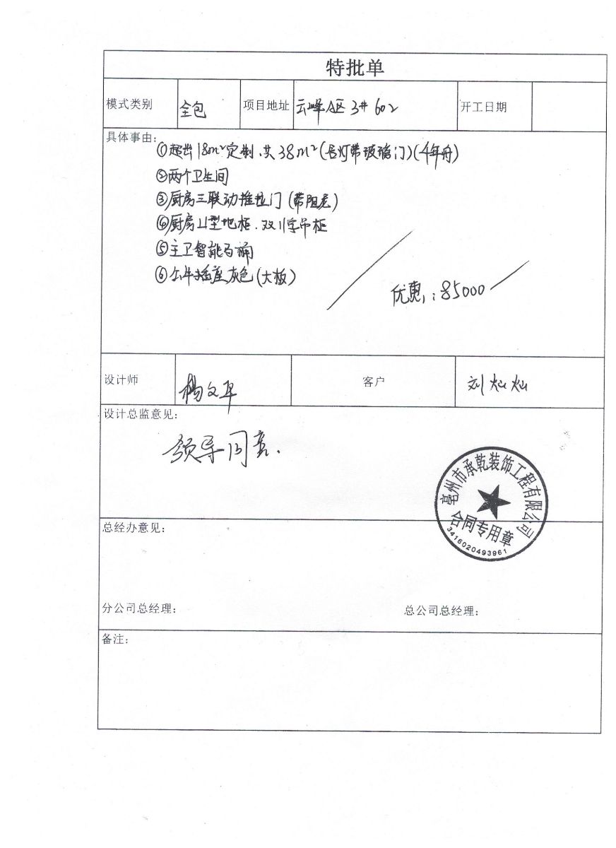 | 裝修造價(jià) | 8.5萬(wàn)元 | 裝修形式 | 全包 | 處理狀態(tài) | 處理中 |