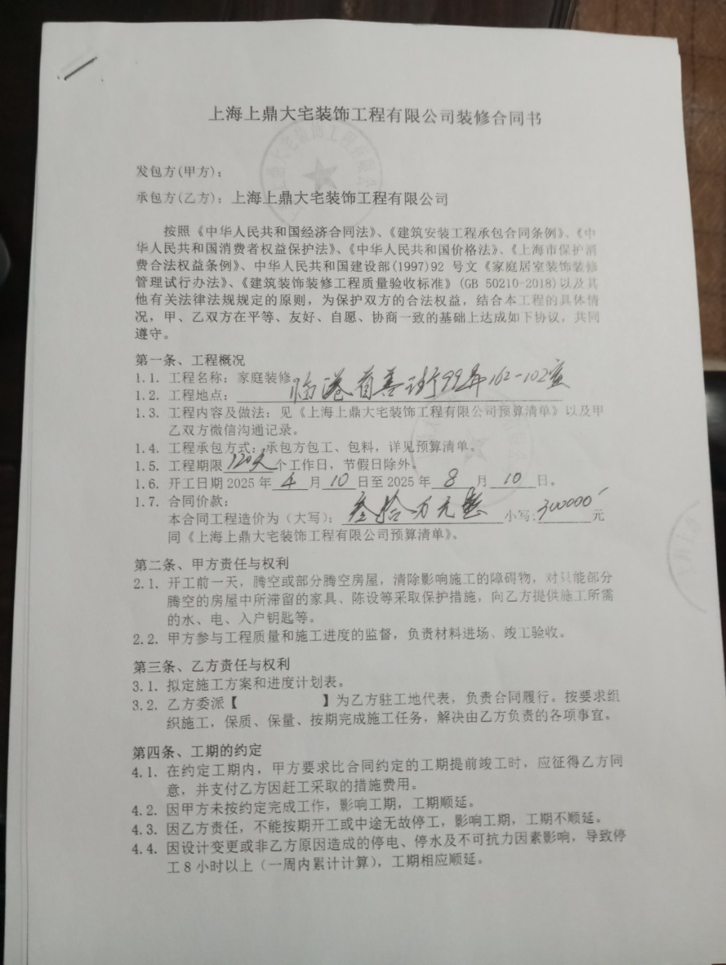 | 投訴類型 | 合同糾紛 | 投訴人 | 劉** | 被投訴單位 | 上海上鼎大宅裝飾公司 |