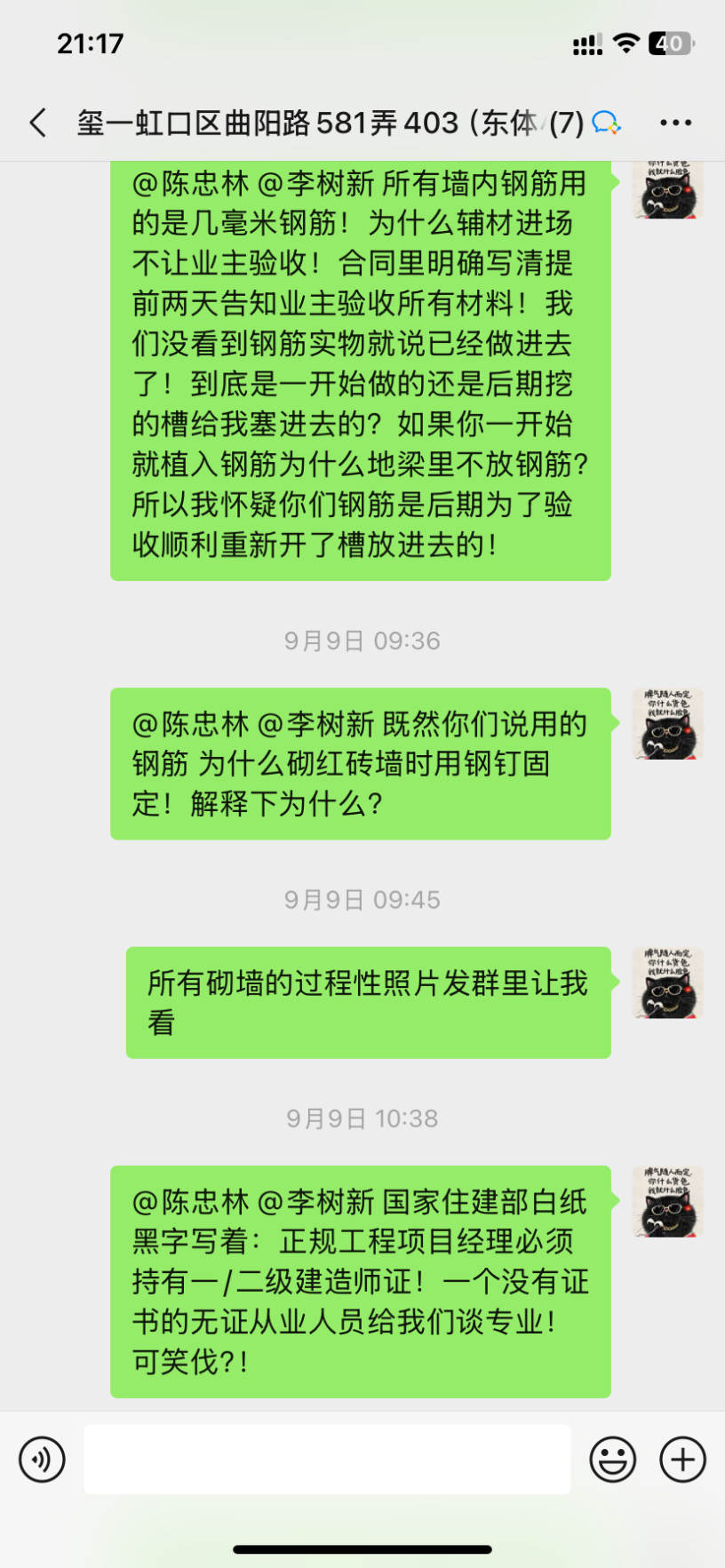 投訴三:投訴上海正聚裝飾公司項(xiàng)目經(jīng)理陳忠林,偷工減料,拒不承認(rèn)自己的錯(cuò)誤且態(tài)度惡劣