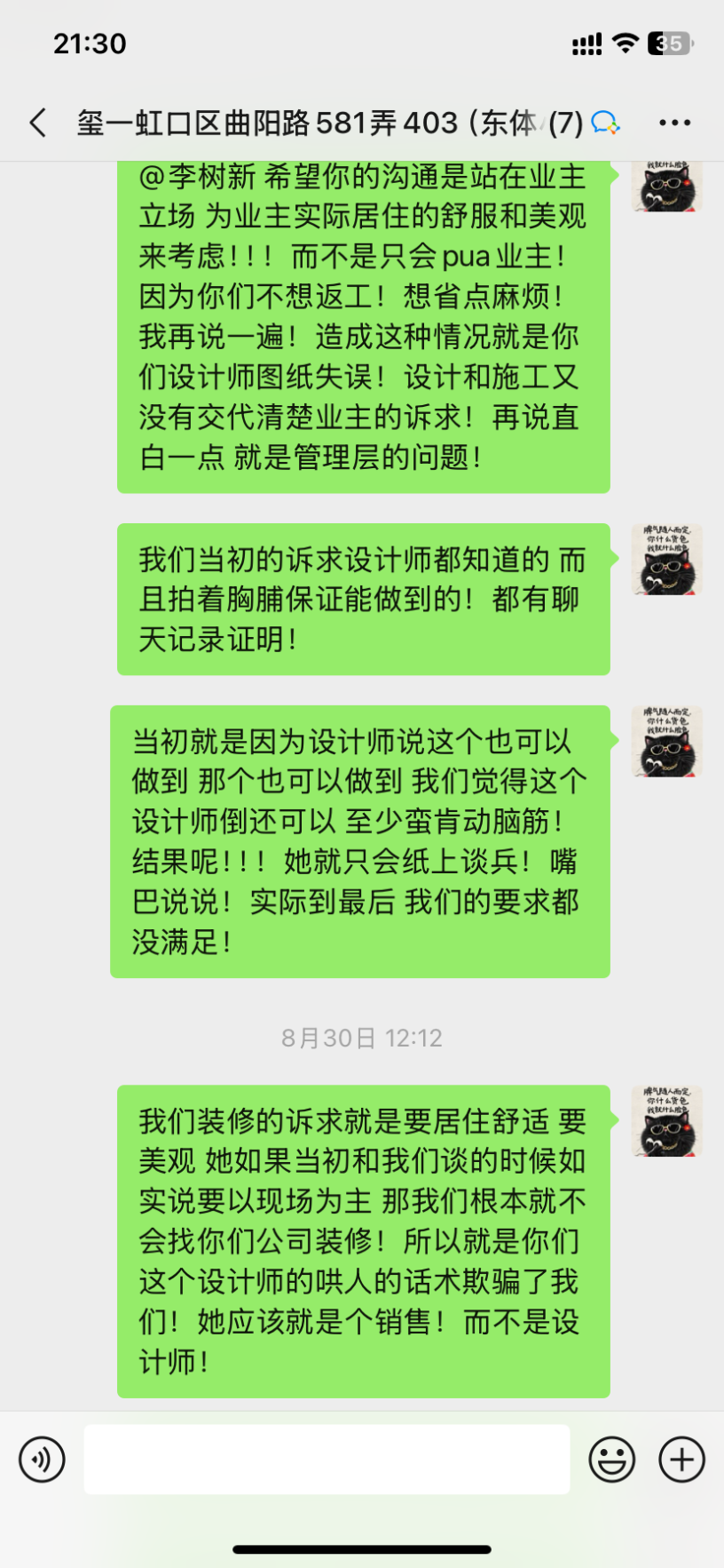 投訴一:投訴上海正聚裝飾設(shè)計(jì)師聞一凡,惡意欺瞞業(yè)主