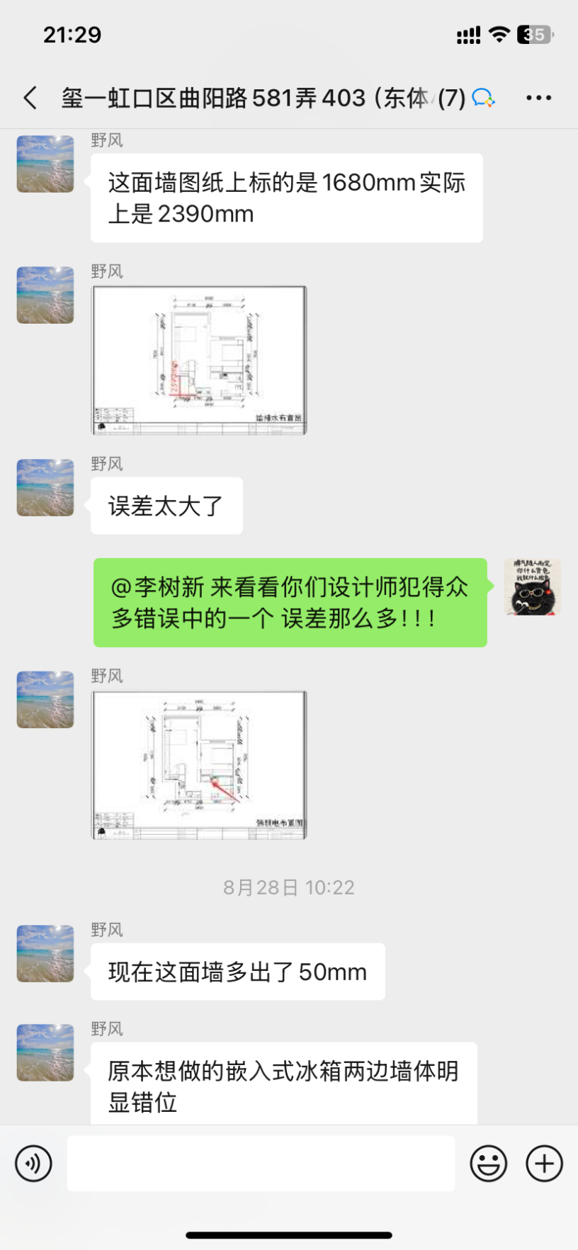 4、聞一凡出的圖紙尺寸誤差極大,很多地方尺寸都沒(méi)標(biāo)注,導(dǎo)致后期工人在施工中發(fā)現(xiàn)沒(méi)有辦法按照她出的圖紙施工。答應(yīng)給我們出瓷磚鋪貼圖的也不出了!后來(lái)盯著她畫,結(jié)果出的瓷磚鋪貼圖還是反的!效果圖是酷家樂(lè)生成的模塊!作為設(shè)計(jì)師應(yīng)該每個(gè)施工節(jié)點(diǎn)都要和業(yè)主和工頭交底,全程參與其中,這設(shè)計(jì)師簽合同前發(fā)消息秒回,簽合同后開(kāi)始敷衍了事,做完水電交接后,開(kāi)始人間蒸發(fā)!