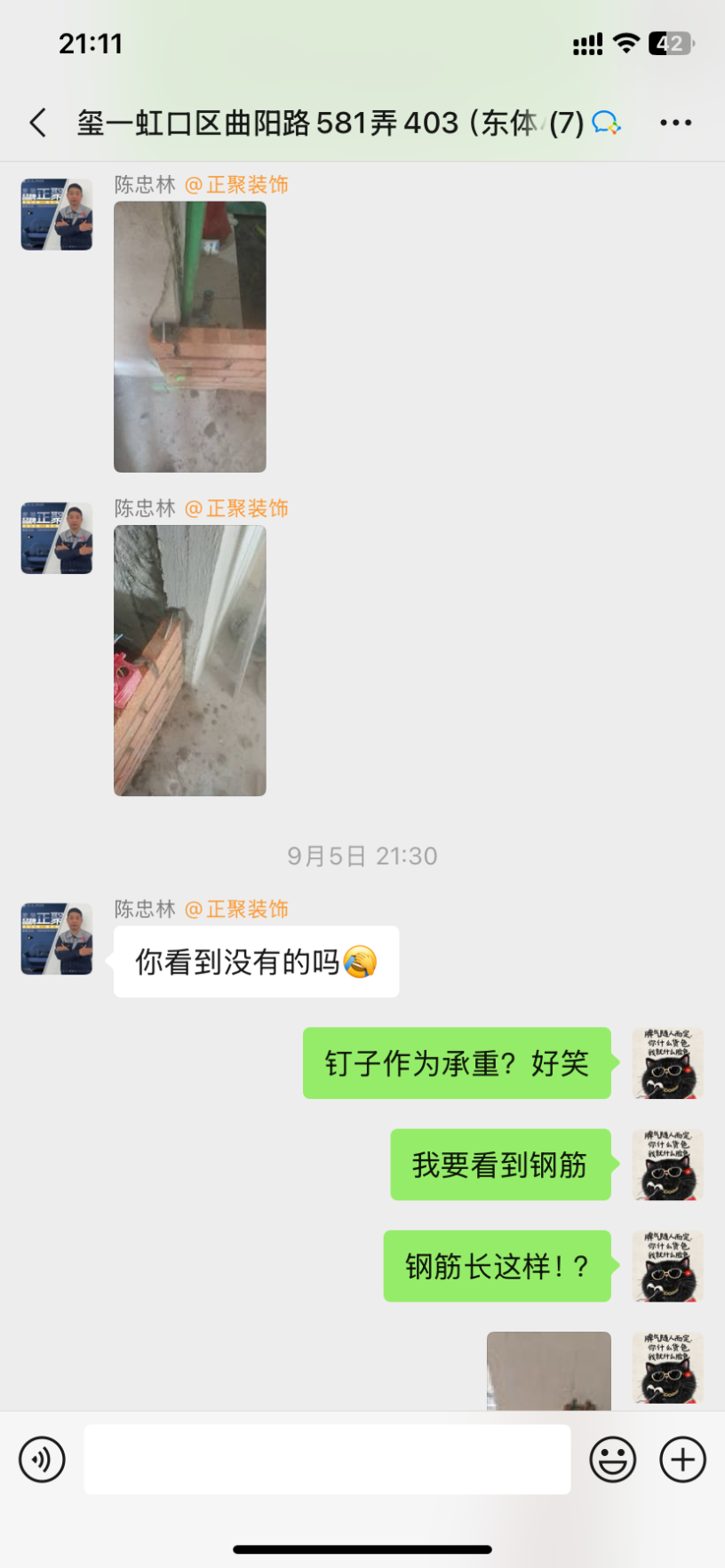 4、正聚管理漏洞百出,設(shè)計(jì)師、項(xiàng)目經(jīng)理、工人都是無(wú)證上崗。項(xiàng)目經(jīng)理偷工減料,施工嚴(yán)重不規(guī)范,業(yè)主和他們交涉多次不肯按規(guī)范整改,甚至為了蒙蔽業(yè)主弄虛作假,暗中做手腳欺騙消費(fèi)者。例如:新砌墻沒(méi)有植入鋼筋,后期為了監(jiān)理審查,墻壁上鑿開(kāi)幾條口子,把鋼筋塞進(jìn)去。