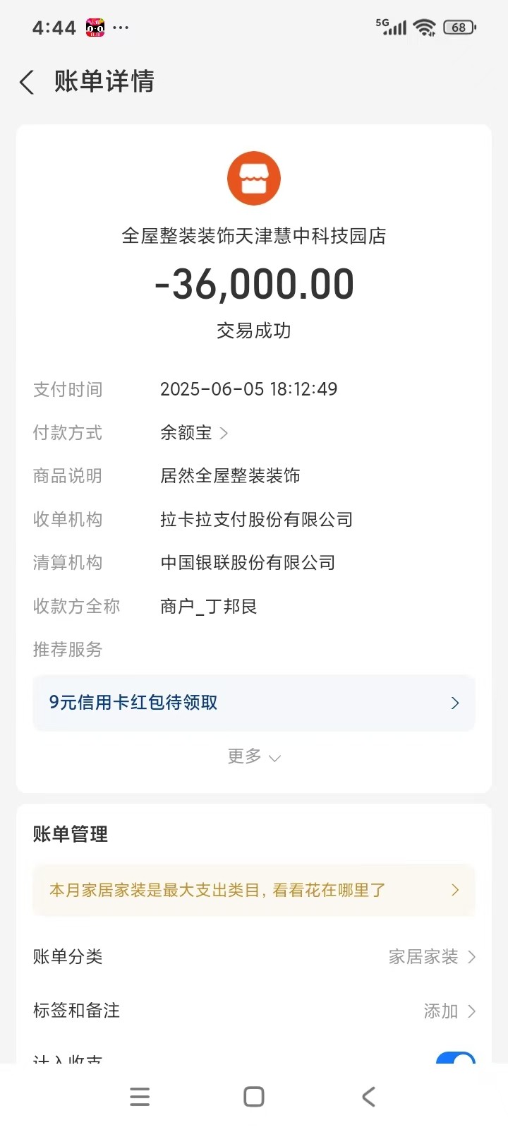 | 裝修造價 | 6000萬元 | 裝修形式 | 全包 | 處理狀態(tài) | 處理中 |