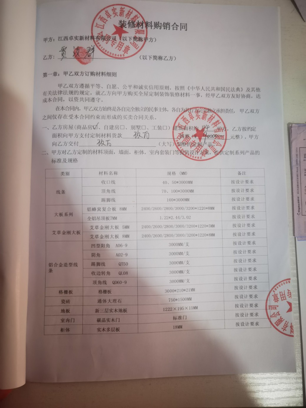 我要投訴江西桌實新材料有限公司虛假宣傳,銷售三無產(chǎn)品板材,我8.20號在抖音上看到看到他們的廣告,打著整屋裝修拎包入住,我就留下聯(lián)系方式,他們銷售聯(lián)系我過去考察,過去以后他們承諾交 9萬施工費所有材料費全包含就可以把我家的118平方的商品房,全部裝修好,拎包入住,包括家具家電,軟裝,(封窗,水電,泥工費除外)交了錢以后就拿出來一份合同,實際合同就是一個高價買材料的,我當時就質(zhì)疑了家裝的為什么要簽合同,他們說走形式而已答應的一定會做到,后面簽了合同,發(fā)過來的都是三無產(chǎn)品板材,沒有合格證,批號,環(huán)保證明,成分表,后面什么施工費物流費輔材費都讓我先墊付,發(fā)板材南昌到我們家一輛4.2米的小型貨車160公里左右路程運費要收我1650,我當時就打電話和安排發(fā)貨的夏經(jīng)理溝通你這是天價運輸費用,可笑的是他告訴我你先墊付到時候公司報銷,正常費用在500元左右,我當時就察覺這明白的是騙子手段,拒絕支付運費,說裝修好了后公司全部報銷承諾的完全不履行,就不打算繼續(xù)了,跟他們友好協(xié)商,他們發(fā)的墻板和瓷磚,我去市場考察了,只值2.5萬左右,希望能借助平臺協(xié)商,退還給我余下的4.5萬元。