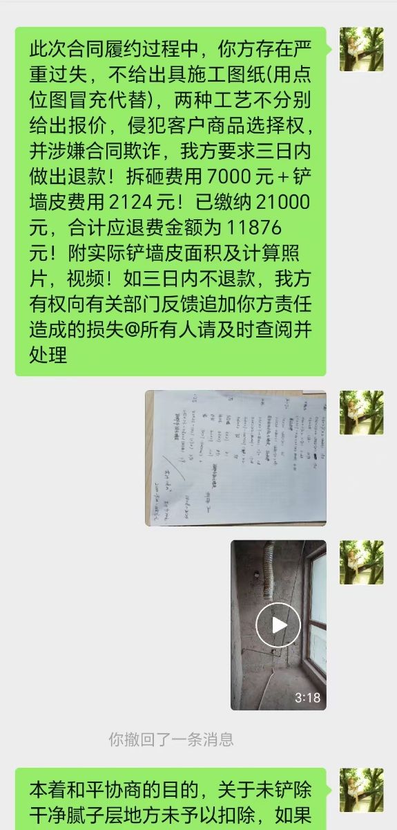 | 投訴類型 | 合同糾紛 | 投訴人 | 張** | 被投訴單位 | 天津萬象天地裝飾裝修公司 |