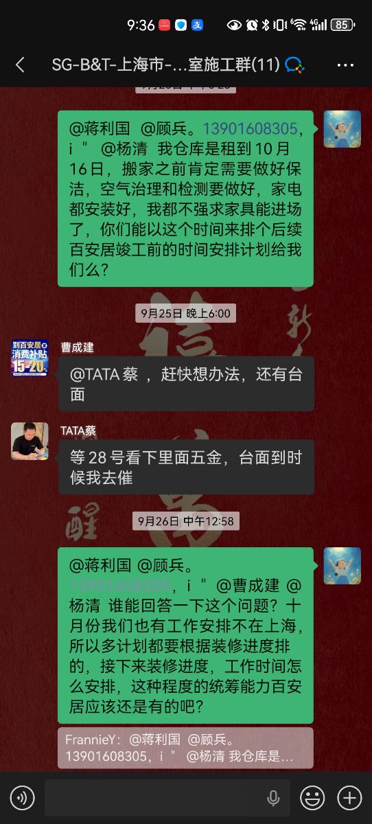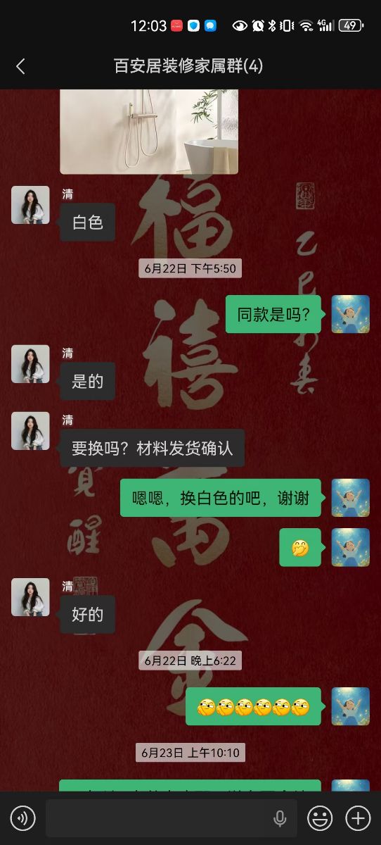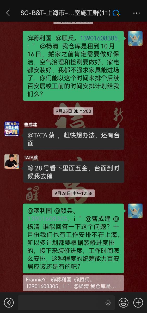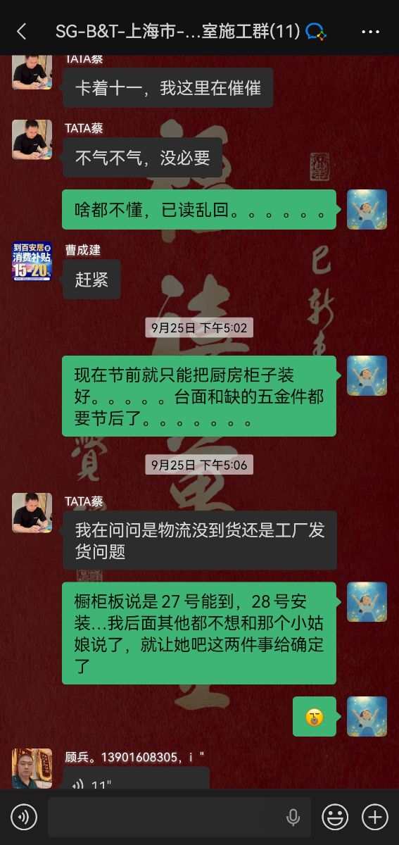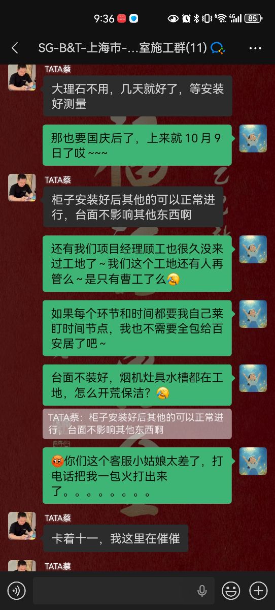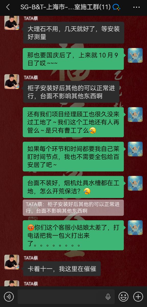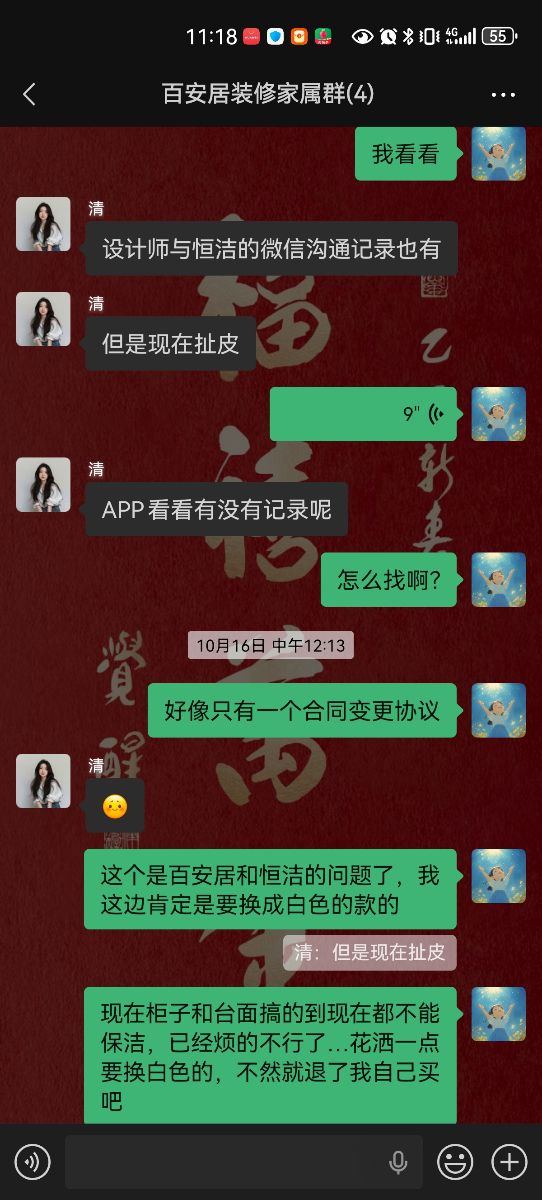 2. 服務(wù)失誤拒不補(bǔ)救,售后形同虛設(shè):百安居自身下單錯(cuò)誤導(dǎo)致花灑錯(cuò)裝,我自 10 月 17 日起多次電話百安居400投訴電話要求退貨退款,對方僅以 “上報(bào)門店” 敷衍,無任何實(shí)質(zhì)進(jìn)展;同時(shí),全屋定制櫥柜出現(xiàn)安裝延誤問題,百安居未安排任何工作人員出面協(xié)調(diào),也未向我告知后續(xù)工程的具體安排計(jì)劃,所有溝通、催促、協(xié)調(diào)工作均需我自行聯(lián)系櫥柜商家完成,完全違背 “全包裝修服務(wù)商統(tǒng)籌責(zé)任” 的行業(yè)準(zhǔn)則。