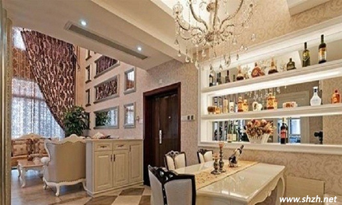 簡(jiǎn)歐新古典的客廳與餐廳酒柜