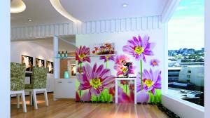 以大屏的玻璃固定在不銹鋼架或木制架欄上,簡約清爽而且和整體環(huán)境很好配合。玻璃的規(guī)格在58毫米以上,壓花玻璃、噴砂彩繪玻璃或磨花造型均可。半遮半掩中就區(qū)隔了空間。旁邊再擺放一盆綠植,讓你一進(jìn)門就感覺到門外的春意。