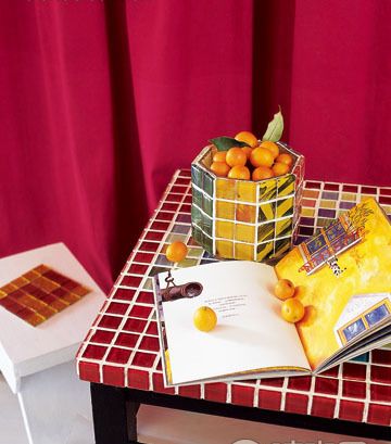 透明的馬賽克可以用來做燭臺(tái),因?yàn)闋T光能夠透過馬賽克朦朦朧朧灑出來,又不似透過普通玻璃那樣直白。還有實(shí)用的紙巾盒、花瓶都可以用馬賽克來制做,一樣的餐桌不一樣的風(fēng)情。