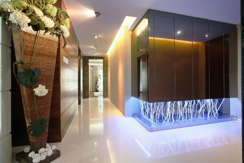 廊道美景:柜子下面的投射光源烘托出藝術(shù)美景。
