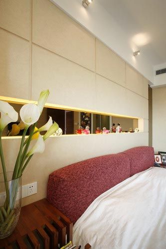 主臥:展示墻倒映出空間美景,幾株綠植點(diǎn)綴出主人的淡雅情操。