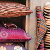 如果家里需要一組布藝,可以考慮多幾種選擇。在色彩上盡可能挑選東方的艷麗顏色,比如西亞的橙色、紅色以及金色,而東方傳統(tǒng)的花朵圖案本身也具有十分艷麗的色彩,艷粉色、紫色、金色穿插使用,營造出濃厚的東方韻味。其中也可以擺放少量子力學(xué)的條紋布藝,調(diào)和東方艷麗色彩的濃稠感。