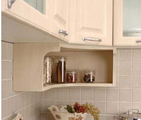 其一,充分利用空間。利用地柜與吊柜的空間的墻面,安裝擱架,可以放置消毒柜微波爐或安裝擱板、掛鉤、杯、調(diào)料瓶、鏟子、勺子等,這樣就避免了它們占據(jù)櫥柜臺面。